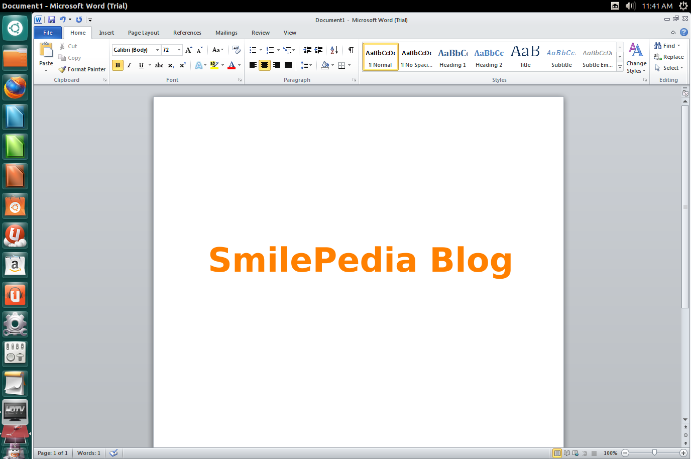Setelah menginstal Office 2010, gunakan Unity Dash untuk mencari Word 2010, PowerPoint 2010, OneNote 2010, Exel 2010, atau Outlook 2010: